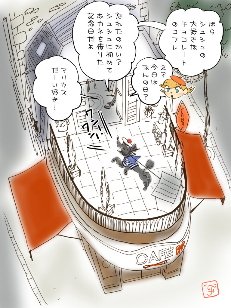 不思議な出来事とキャラクターが飛び交うファンタジーなパリの片隅で始まる、シュシュとショコラの不思議な同居生活。カフェを営む自分探しのパリジェンヌ・シュシュと、魔女の呪いでプードルに変えられた水夫・ショコラ。運命的な出会いから生まれる、二人の温かくユーモラスなパリの愛情物語。 ← コンドル・ジャック 独身惑星ブルータス →